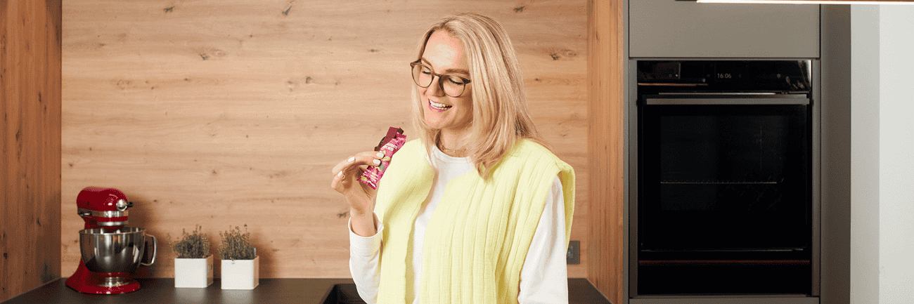Ich snacke die Riegel am liebsten in der Mittagspause zum überbrücken zwischen einem späten Frühstück und einem frühen Abendessen. Aber auch beim Sport, wenn die Energie ausgeht. Eigentlich bei jeder Gelegenheit wenn ich ehrlich bin ;-)