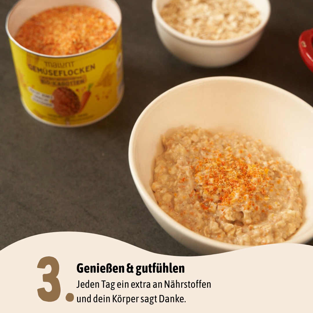 Mit unseren Gemüseflocken wirst du dich wieder neu in Gemüse verlieben. Denn unsere neuen Flocken aus 100% purem Bio-Gemüse sind das perfekte Upgrade für jedes Gericht.