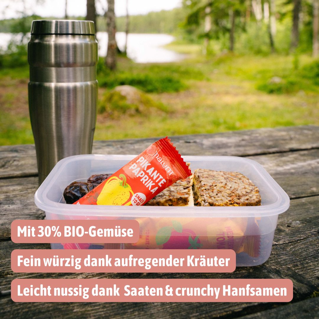 Das Brotzeit-Bundle Bio-Gemüse-Riegel enthält: 12x Pikante Paprika, 12x Geröstete Karotte