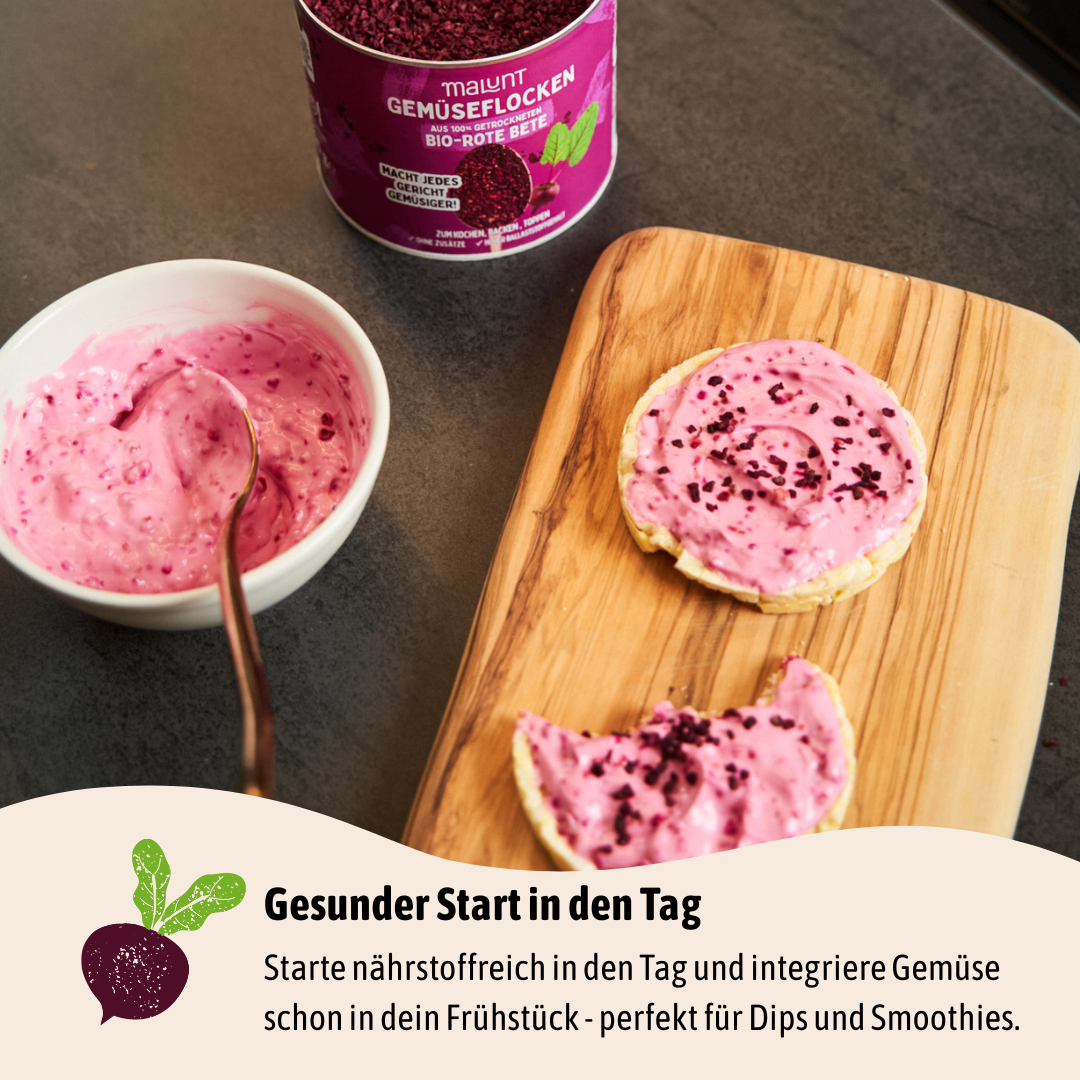 Mit malunt kannst du ganz einfach noch mehr Gemüse in deinem Alltag integrieren. Denn unsere neuen Flocken aus 100% purem Bio-Gemüse sind das perfekte Upgrade für jedes Gericht.Ohne weitere Zubereitung können die Gemüseflocken zum Kochen, Backen und Toppen eingesetzt werden. Dose auf. Löffel rein. Flocken streuen. Fertig.