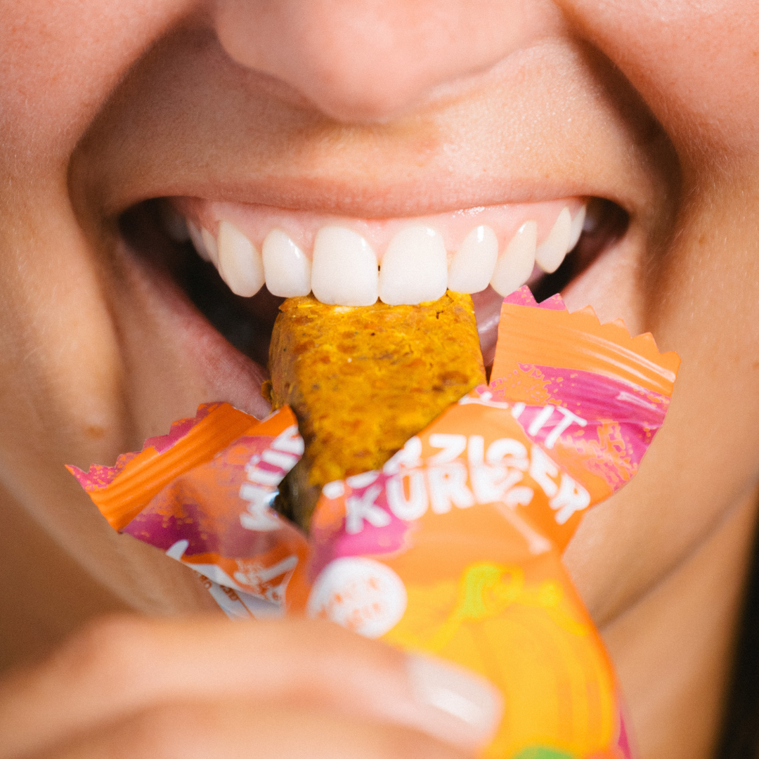 Das Kürbis-Set unterstützt dich dabei, dein tägliches Gemüseziel zu erreichen. Mit natürlichen Nährstoffen, Ballaststoffen und pflanzlichen Proteinen für eine darmfreundliche Ernährung. Unsere Kürbisflocken lassen sich mühelos in Porridge, Pasta, Suppen oder Smoothies integrieren. Sie liefern dir auf natürliche Weise wertvolle Vitamine, Mineralstoffe und reichlich Ballaststoffe, die eine normale Verdauung unterstützen und langfristig zu einem guten Darmgefühl beitragen. Durch ihren mild-nussigen Geschmack passen sie sich jedem Gericht an und schenken dir täglich einen unkomplizierten Gemüse-Moment. Die Kürbisriegel ergänzen das Set als vollwertiger, pflanzlicher Snack für unterwegs. Sie enthalten natürliche Proteine und Ballaststoffe, sättigen angenehm und helfen dir, auch zwischendurch auf eine nährstoffreiche und darmfreundliche Ernährung zu achten, ganz ohne Vorbereitung.
